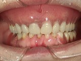 歯周病に罹患した場合も治療する事によって歯並びを改善し、ガタガタだった下の前歯もセラミッククラウンによって奇麗に若返ります。奥歯は針金タイプの仮義歯が入っていますが(咬合改善の為)、次回、針金がない審美義歯 Artifical Tooth を作る予定です。